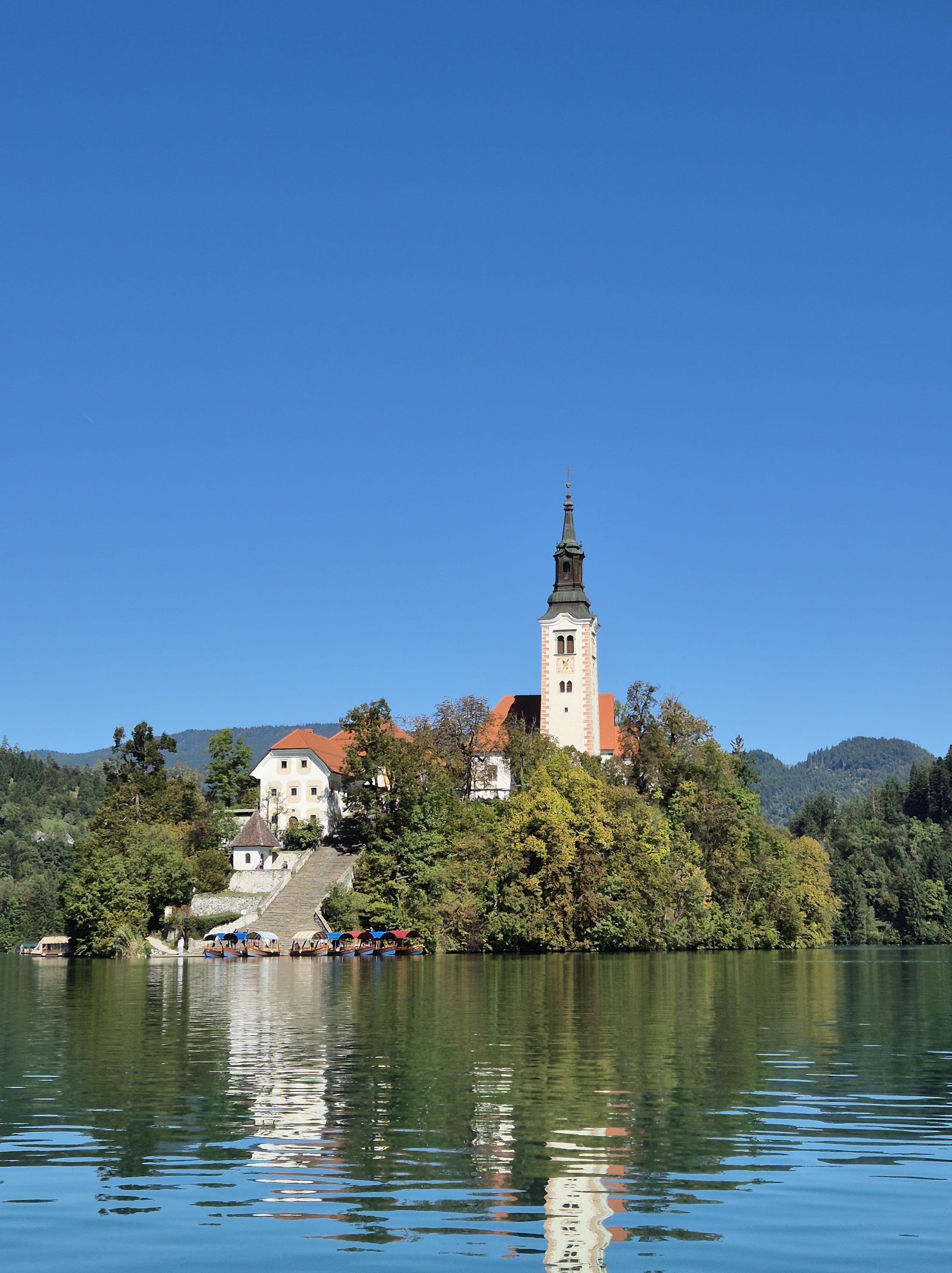 Auf einem traditionellen Pletna-Boot werden wir von einem Schiffer zur idyllischen Bleder Insel gerudert. Der Blick über den funkelnden Bleder See und die eindrucksvolle Bergkulisse ist unvergesslich. Am Mittag darf die Spezialität der Region nicht fehlen: die Bleder Cremeschnitte.